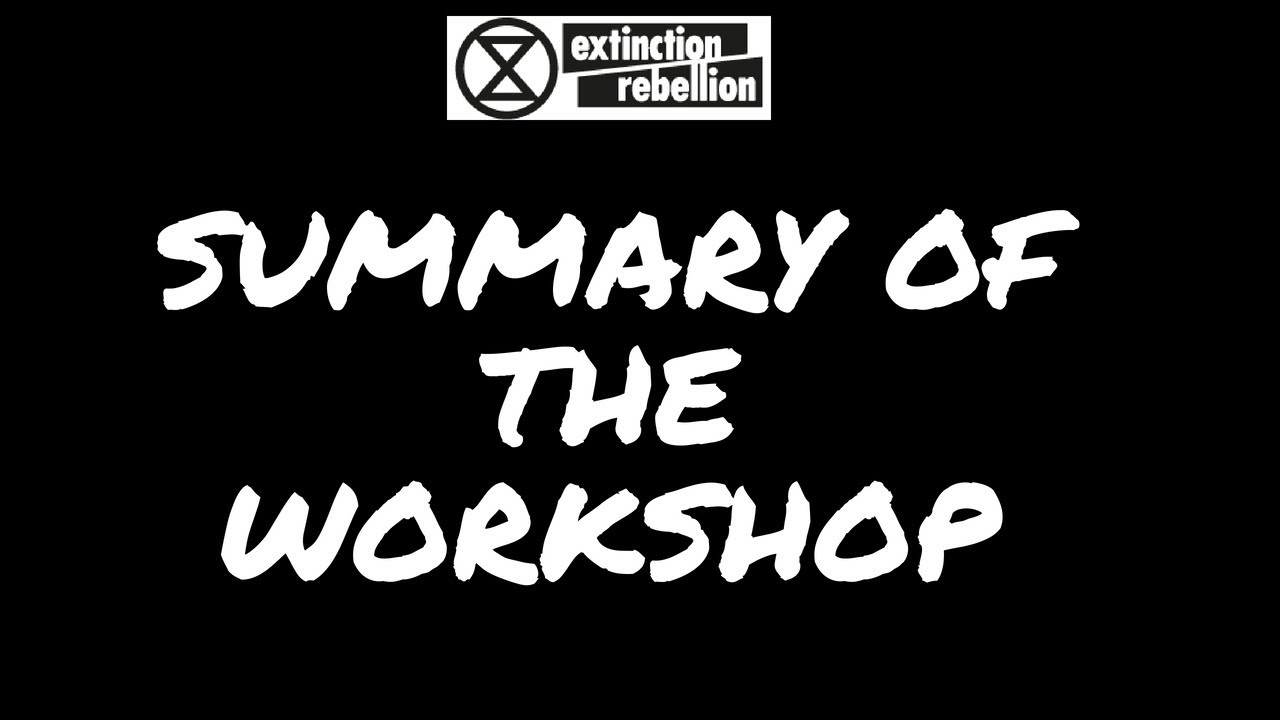In this video, Robin, a co-ordinator from Outreach and Training gives a summary of the initial workshop for the Extinction Rebellion and how it is used to recruit new members to the rebellion.